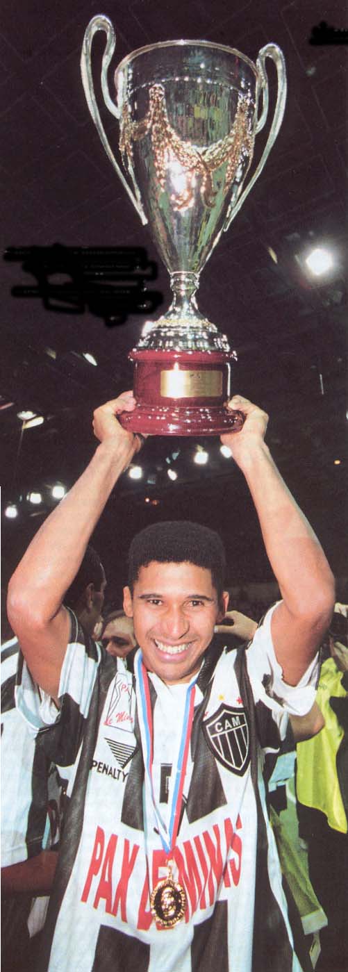 Foto do ala Manoel Tobias levantando o troféu da Copa Intercontinental em 1998.